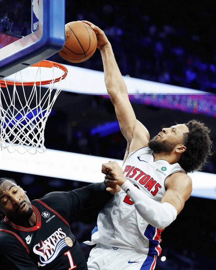 NBA官方曬出隔扣照:坎寧安扣翻了德拉蒙德。流言裂N拉蒙