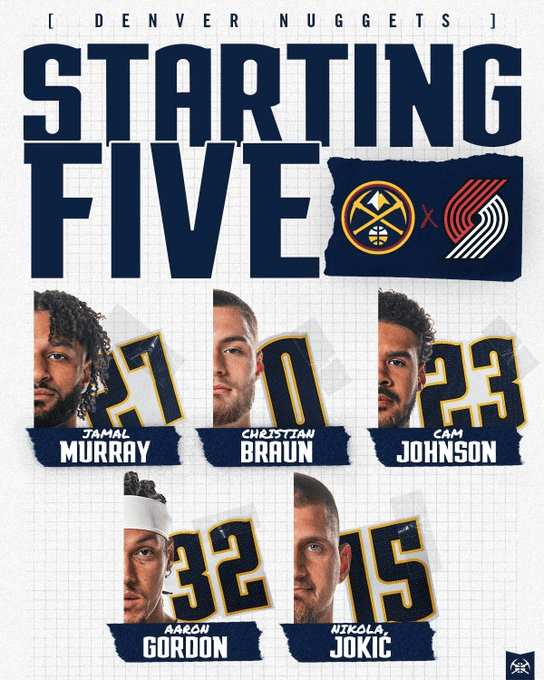 賽前,遜戈掘金官方公布了本場(chǎng)比賽的首發(fā)陣容: