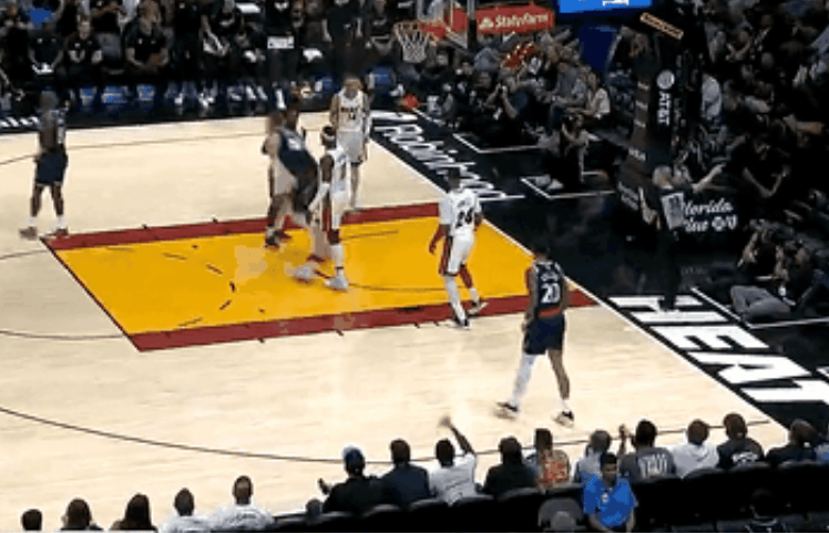 第一節比賽,手感守端阿德巴約開(kāi)局手感火熱里突外投連得7分,火熱防守端再大帽祖巴茨。突連