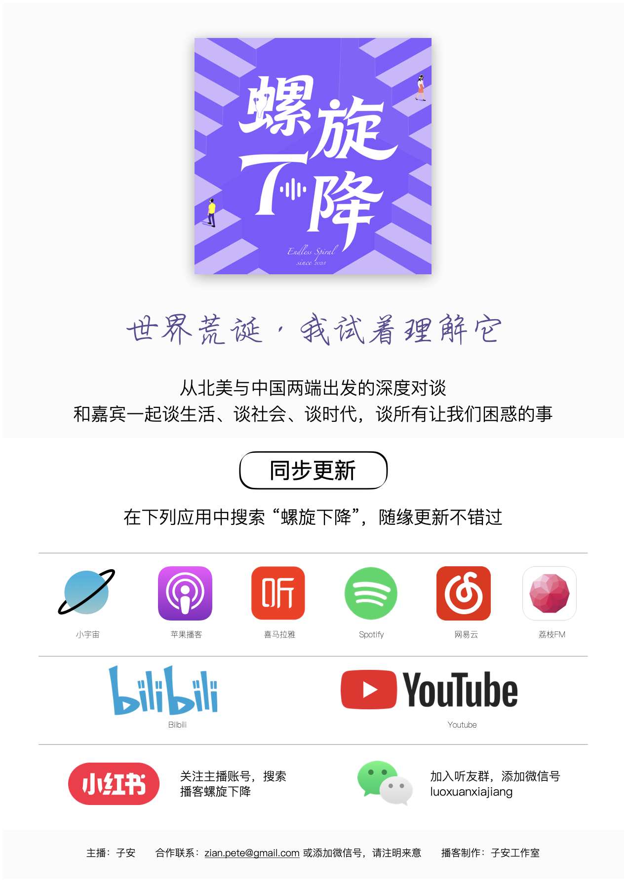 休息了一個(gè)月??,我打算一個(gè)人繼續做播客,可見(jiàn)的未來(lái)里,內容會(huì )是邀請嘉賓做長(cháng)時(shí)間的即興對談;考慮到以前周更的burnout程度,定期更新有點(diǎn)奢望,為了長(cháng)跑就隨緣隨性吧!有合適的嘉賓就錄,沒(méi)合適的嘉賓就躺,多串臺,多嘗試,多去主動(dòng)接觸以前不接觸的世界,才能把播客這件事一直做下去!