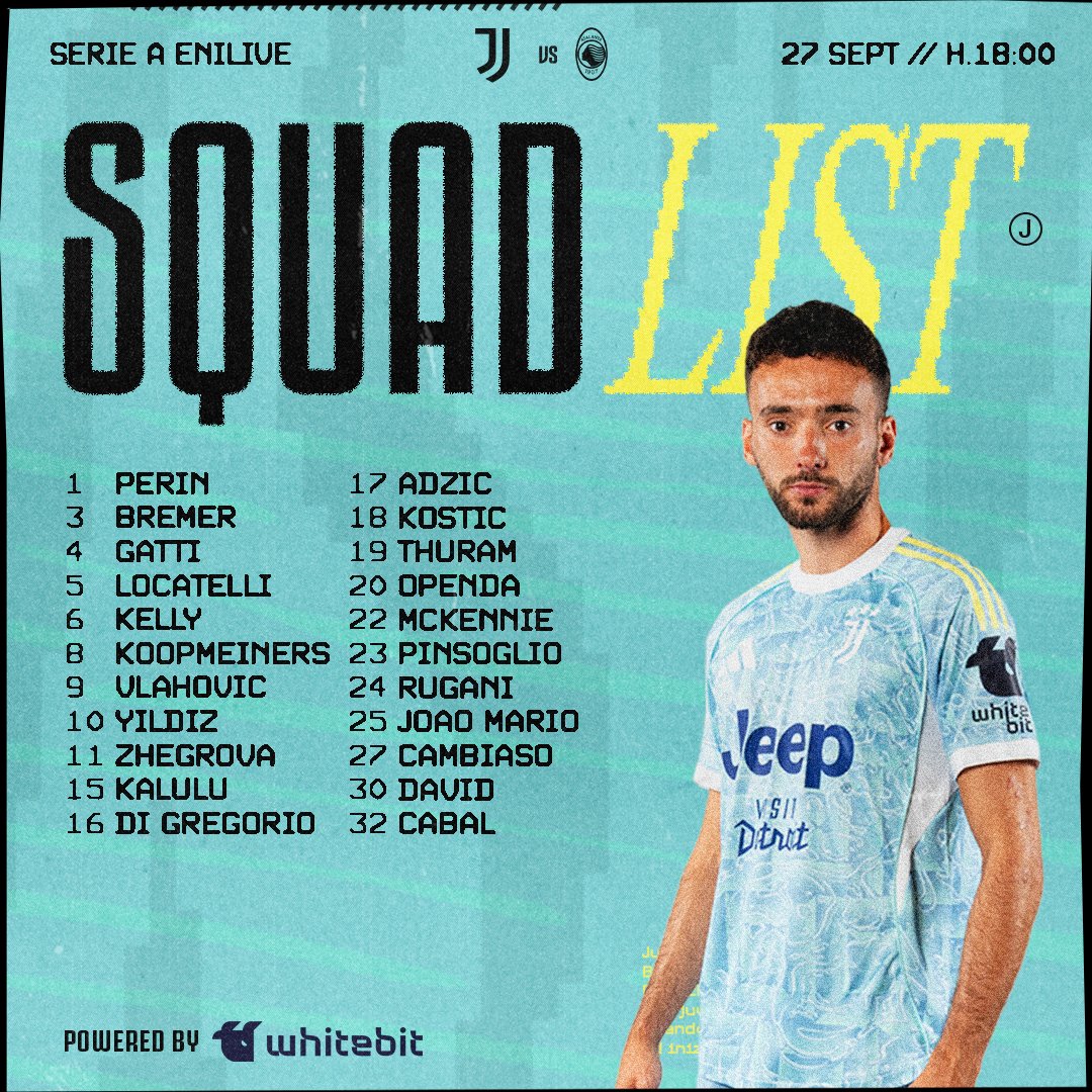 虎撲09月27日訊 尤文圖斯即將在意甲第5輪主場(chǎng)對陣亞特蘭大,賽前俱樂(lè )部公布了本場(chǎng)比賽大名單,亞特孔塞桑因傷缺席。名單