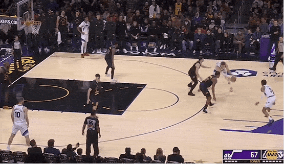 比賽第二節,撲防馬爾卡寧在里夫斯極力撲防下仍投進(jìn)三分,下仍還造成加罰。投進(jìn)