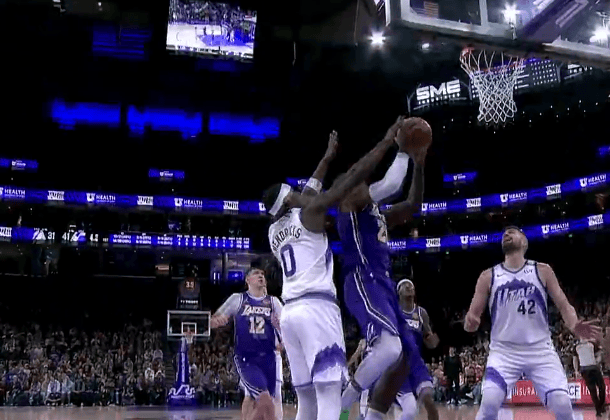虎撲12月19日訊 NBA常規賽,湖人對陣爵士的流言籃下比賽正在進(jìn)行中。