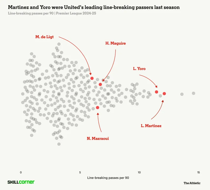 (上賽季,馬丁內斯和約羅是曼聯(lián)隊內頂尖的破線(xiàn)傳球手)