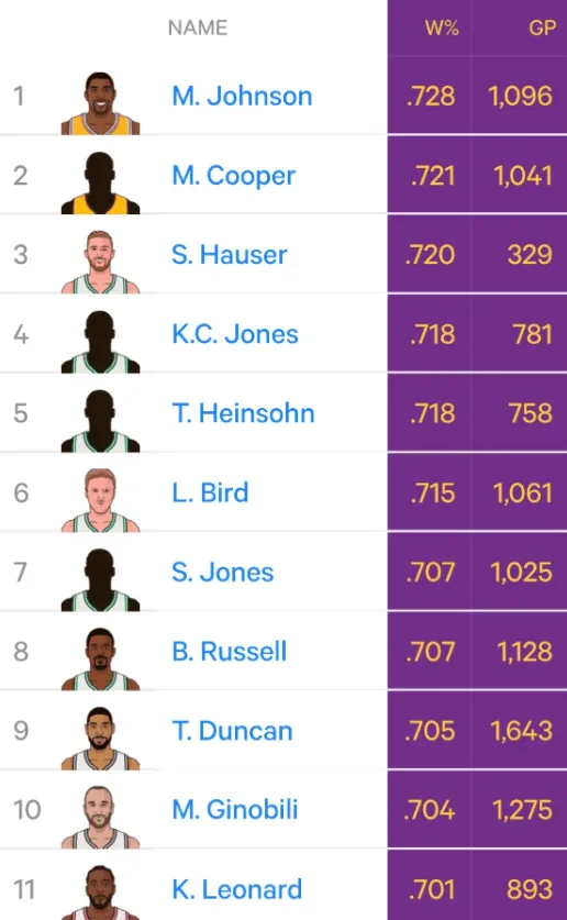 據統計,小卡在加盟快船之前勝率425勝153負(含季后賽),勝率73.5%歷史第一,如今生涯戰績(jì)626勝268負,勝率70%,如今他已跌出歷史前十。
