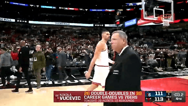 [流言板]武切維奇生涯對陣76人39場(chǎng)中26場(chǎng)砍下兩雙,比例高達66.7%