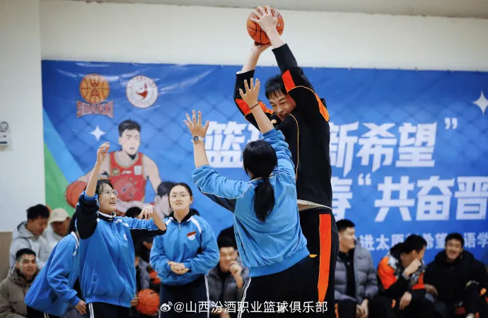 配文:籃球“新希望”,板山青春“共奮晉”。西男享校