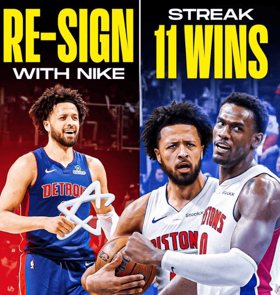 文中提到坎寧安先是與耐克完成續約,鎖定了一份包括擁有他個(gè)人簽名球鞋(預計2026-2027賽季發(fā)布)的新合約,然后在對陣亞特蘭大老鷹的比賽中,活塞保持了連勝勢頭,擊敗老鷹將連勝場(chǎng)次升至11場(chǎng)。這是活塞自2007-2008賽季以來(lái)最長(cháng)的連勝記錄。不久之前,這支球隊還深陷10連敗,墊底全聯(lián)盟。