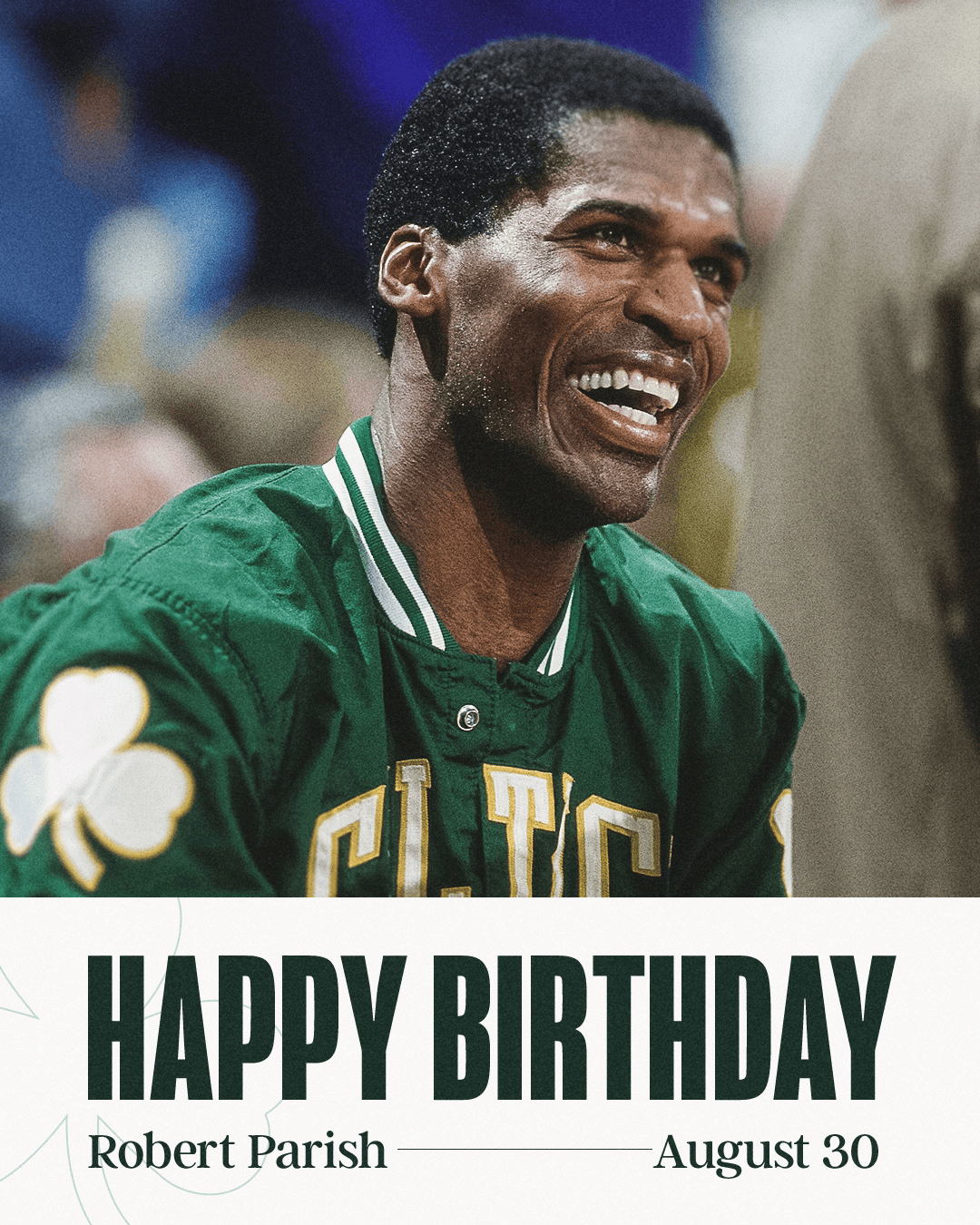 虎撲08月30日訊 凱爾特人官方更新動(dòng)態(tài),曬出海報祝福球隊名宿羅伯特-帕里什生日快樂(lè ):酋長(cháng)生快 ??????