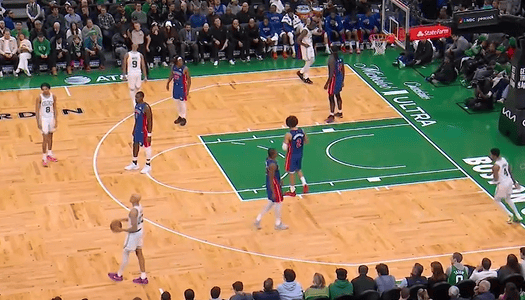 今日NBA常規賽,凱爾特人主場(chǎng)對陣活塞。準坎再投中分中分中砍助攻