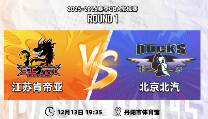 賽前,男籃江蘇男籃官方發(fā)布賽事預告,流言籃官并配文道:“常規賽 ROUND1,2025年12月13日(周六)19:35,比賽地點(diǎn)—丹陽(yáng)市體育館,一起為肯帝亞男籃加油助威! ???”
