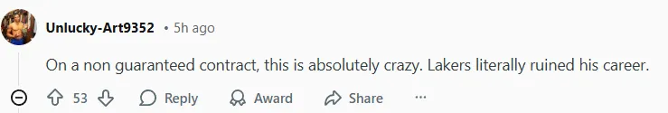 -(53贊)在無(wú)保障合同下,這簡(jiǎn)直太瘋狂了。湖人真的毀了他的職業(yè)生涯。