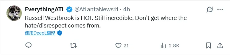 -(21贊)拉塞爾·威斯布魯克是名人堂級別的球員。至今表現仍令人驚嘆。實(shí)在不明白那些憎恨/不尊重從何而來(lái)。