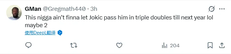 -這家伙可不會(huì )讓約基奇在三雙榜上超過(guò)他,至少要等到明年,哈哈,說(shuō)不定得兩年呢