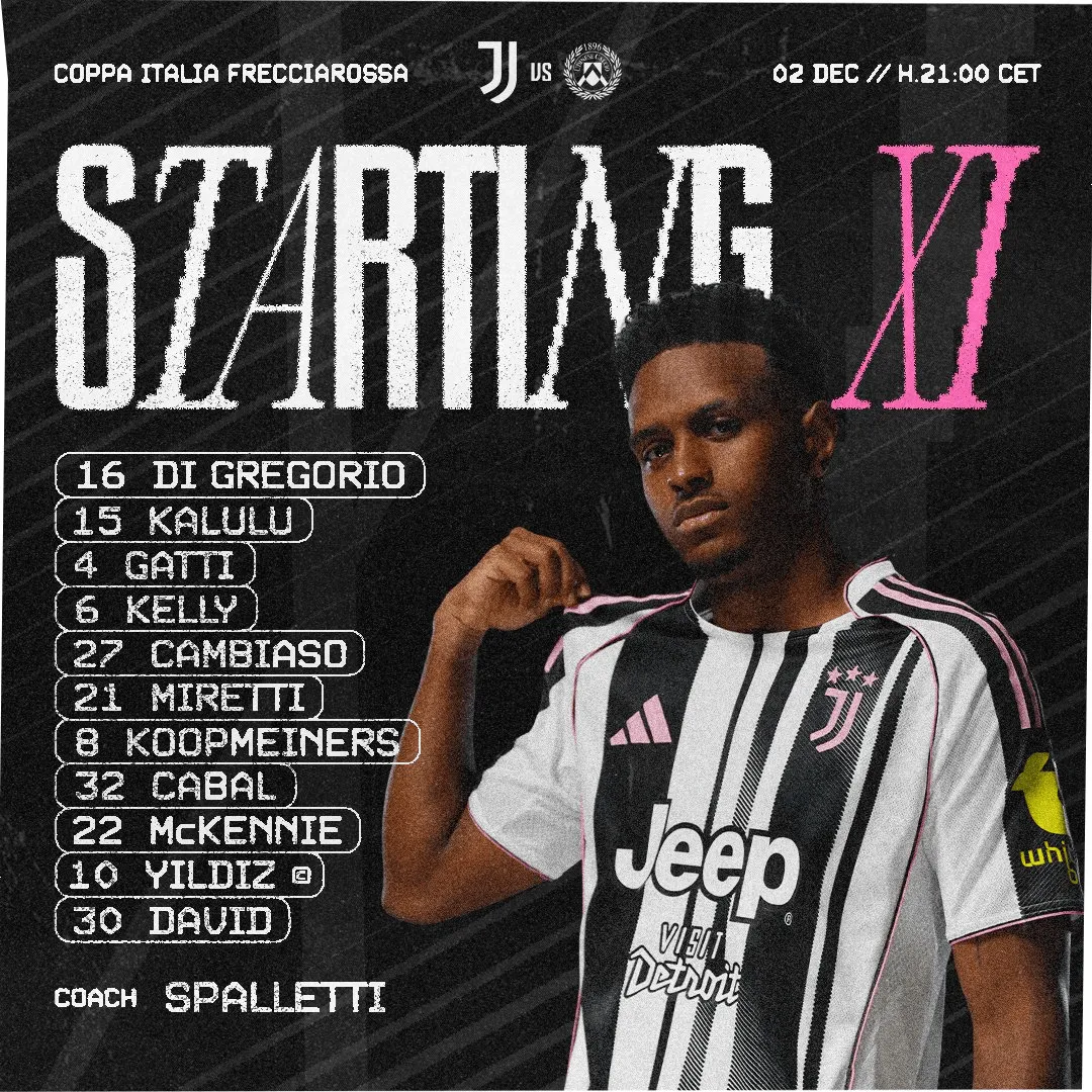 尤文圖斯首發(fā):16-迪格雷戈里奧、4-加蒂、15-卡盧盧、6-勞埃德-凱利、27-坎比亞索、22-麥肯尼、8-庫普梅納斯、21-米雷蒂、32-卡瓦爾、30-喬納森-戴維、10-伊爾迪茲