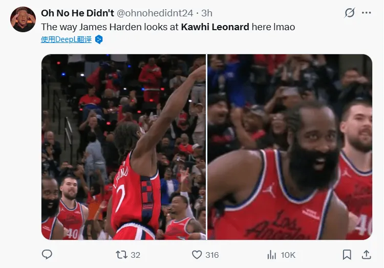 -(316贊)詹姆斯·哈登此刻看著(zhù)科懷·倫納德的眼神笑死我了
