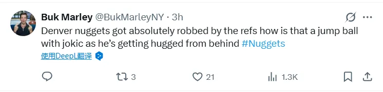 -(21贊)丹佛掘金被裁判徹底坑了!約基奇背后被人抱住還判跳球?這算什么?