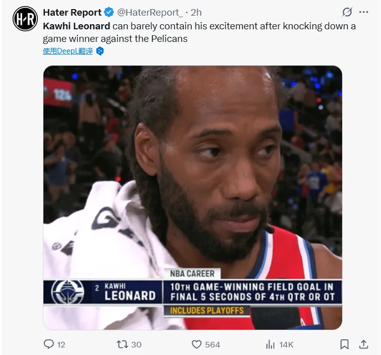 -(564贊)科懷·倫納德在對陣鵜鶘的比賽中命中絕殺球后,興奮之情難以自抑。