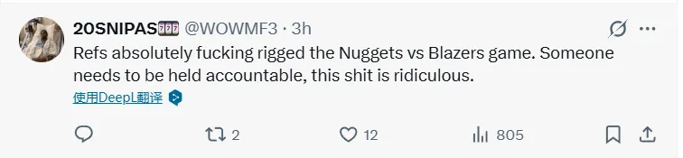 -(12贊)裁判絕對TMD操縱了掘金對陣開(kāi)拓者的比賽。必須有人為此負責,這TMD太荒謬了。