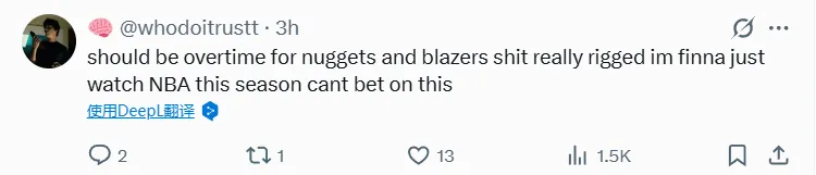 -(13贊)掘金和開(kāi)拓者這比賽該加時(shí)了。這破比賽根本是黑的,這賽季我只看NBA不下注了