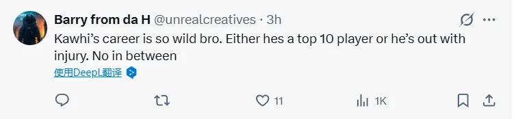 -(11贊)卡哇伊的職業(yè)生涯真是瘋狂啊,兄弟。要么是聯(lián)盟前十的球員,要么就因傷缺陣。沒(méi)有中間狀態(tài)。