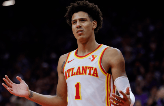 老鷹球員杰倫-約翰遜半場(chǎng)10投6中、板全三分2中0得到12分5籃板2助攻1搶斷?,F杰