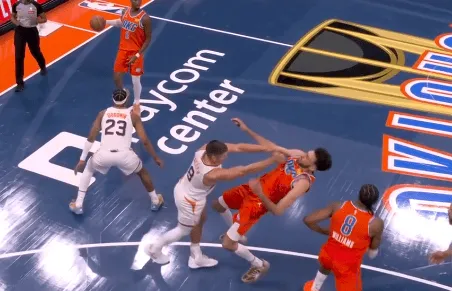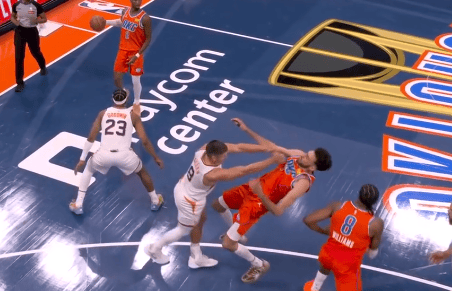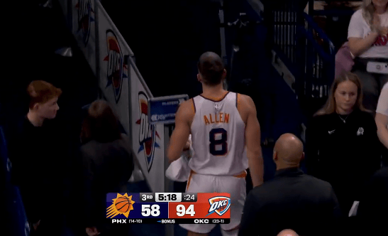 第三節比賽中,發(fā)沖犯規格雷森-阿倫防守時(shí)發(fā)力推倒霍姆格倫引發(fā)沖突,突前裁判回看錄像后吹罰阿倫二級惡意犯規直接驅逐。吹級