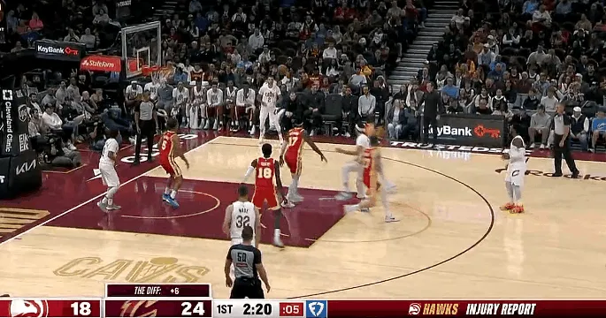 NBA常規賽,騎士對陣老鷹的反擊分投比賽正在進(jìn)行中。