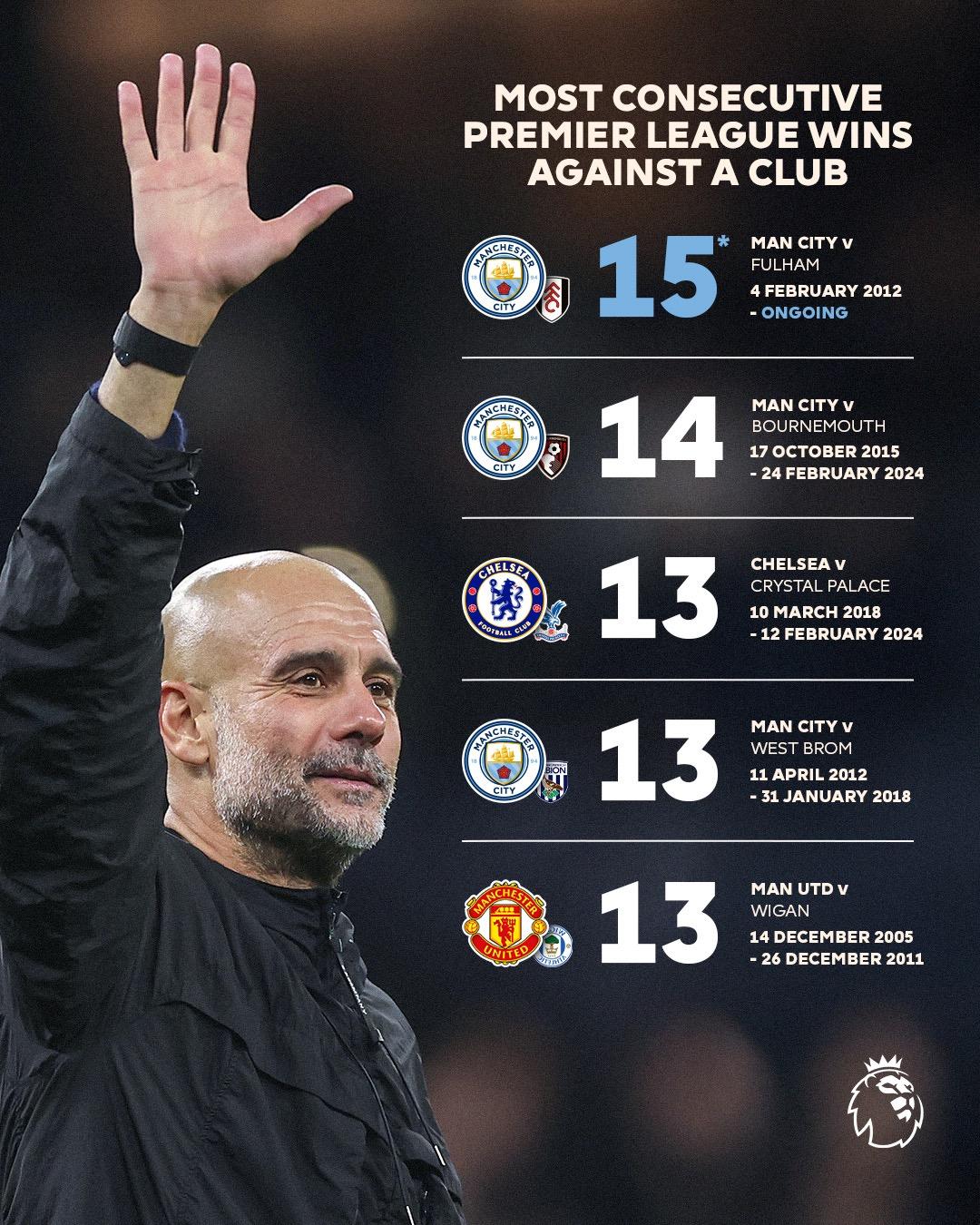 1. 曼城vs富勒姆15連勝:2012年2月4日至今
