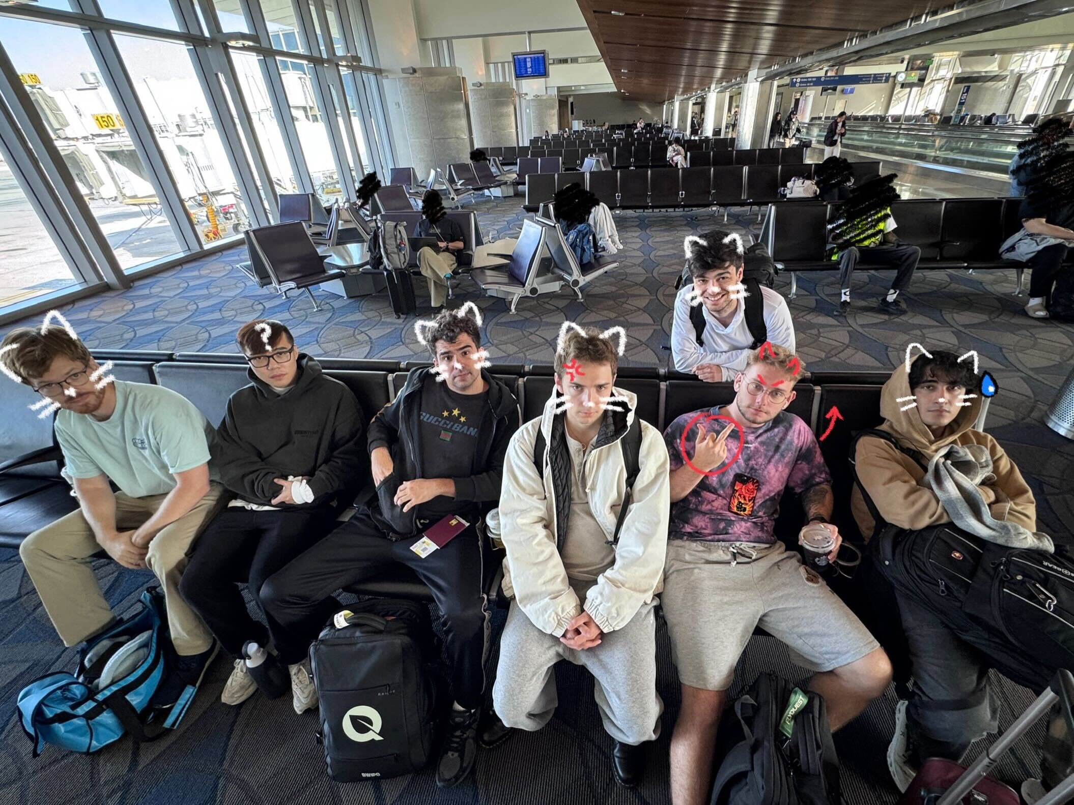 FLY戰隊官方推特發(fā)布選手機場(chǎng)合照,官方配文:??????????????