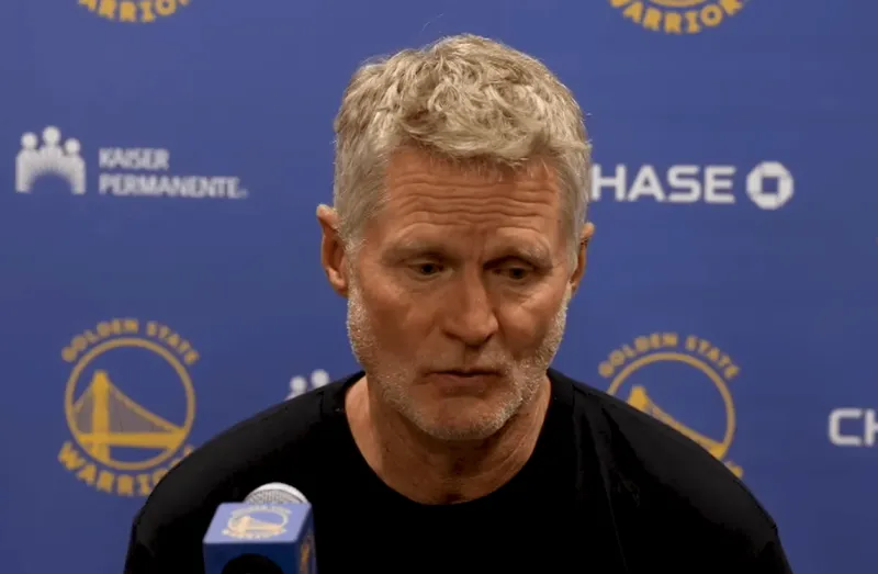 賽后,勇士主教練史蒂夫-科爾接受了記者采訪(fǎng),談到了本場(chǎng)比賽球隊最后時(shí)刻的表現。