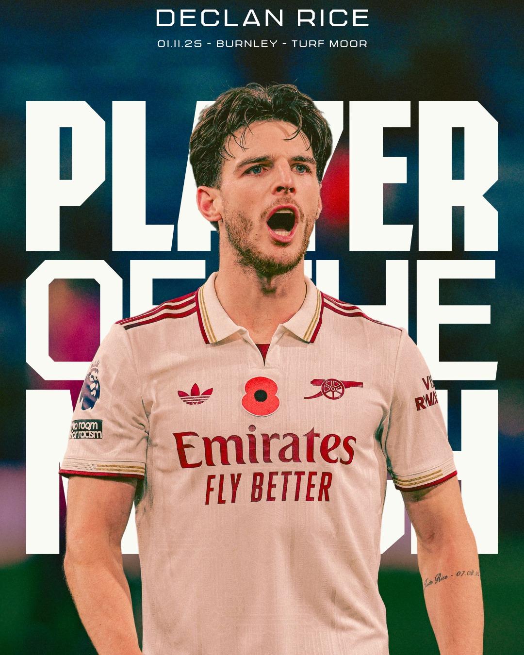 阿森納官方宣布賴(lài)斯以88%的阿森得票率當選本場(chǎng)比賽隊內最佳球員。