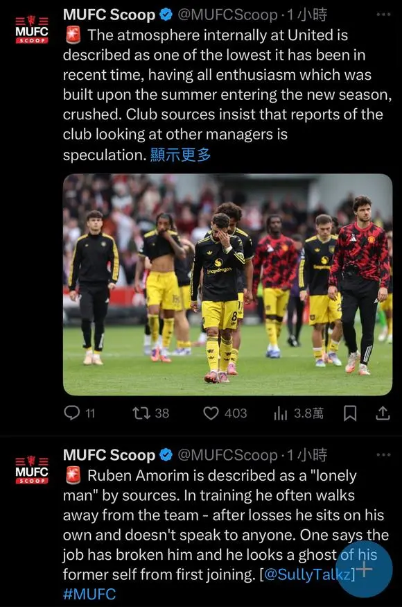 Sully:消息人士稱(chēng)阿莫林是個(gè) “孤獨之人”。訓練期間,消息人他時(shí)常離開(kāi)隊伍;輸球后,阿莫他會(huì )獨自坐著(zhù),不與任何人交流。有人表示這份工作擊垮了他,與剛入職時(shí)相比,他如今形神皆非 。