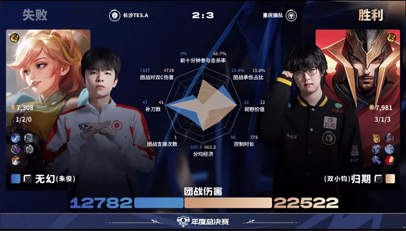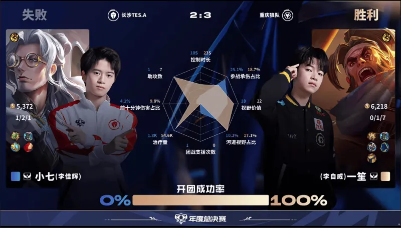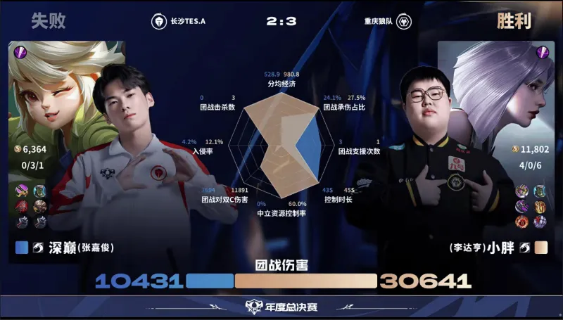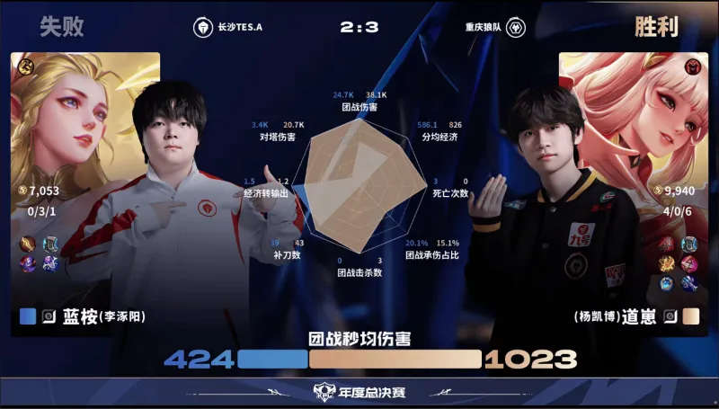 [流言板]狼隊/TES.A第五局數據對比:道崽公孫離多數據包圍藍桉艾琳