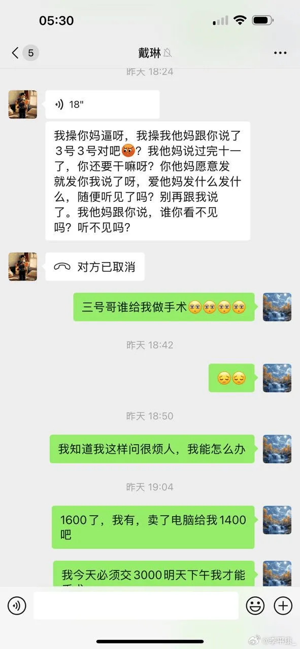 [流言板]李平康曝光戴琳借錢(qián)不還且辱罵債主的錄音:不怕遭報應?