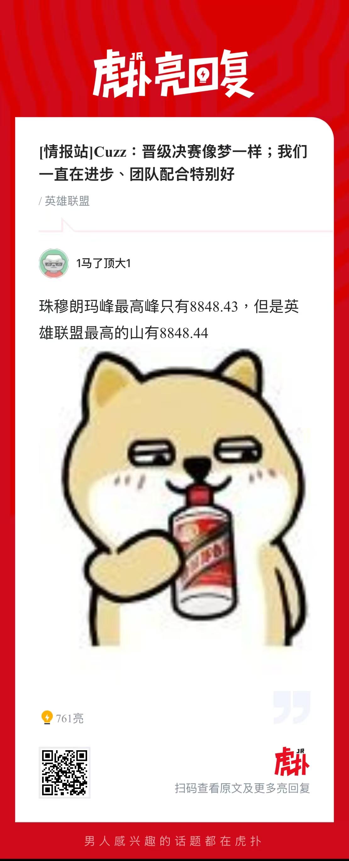 “英雄聯(lián)盟最高的神山珠山來(lái)了,珠峰8848.43,評英超威8848.44。雄聯(lián)”