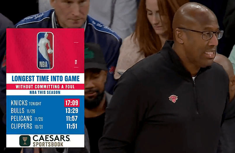 尼克斯開(kāi)局17分09秒都沒(méi)有出現犯規,創(chuàng )本賽季聯(lián)盟最長(cháng)紀錄