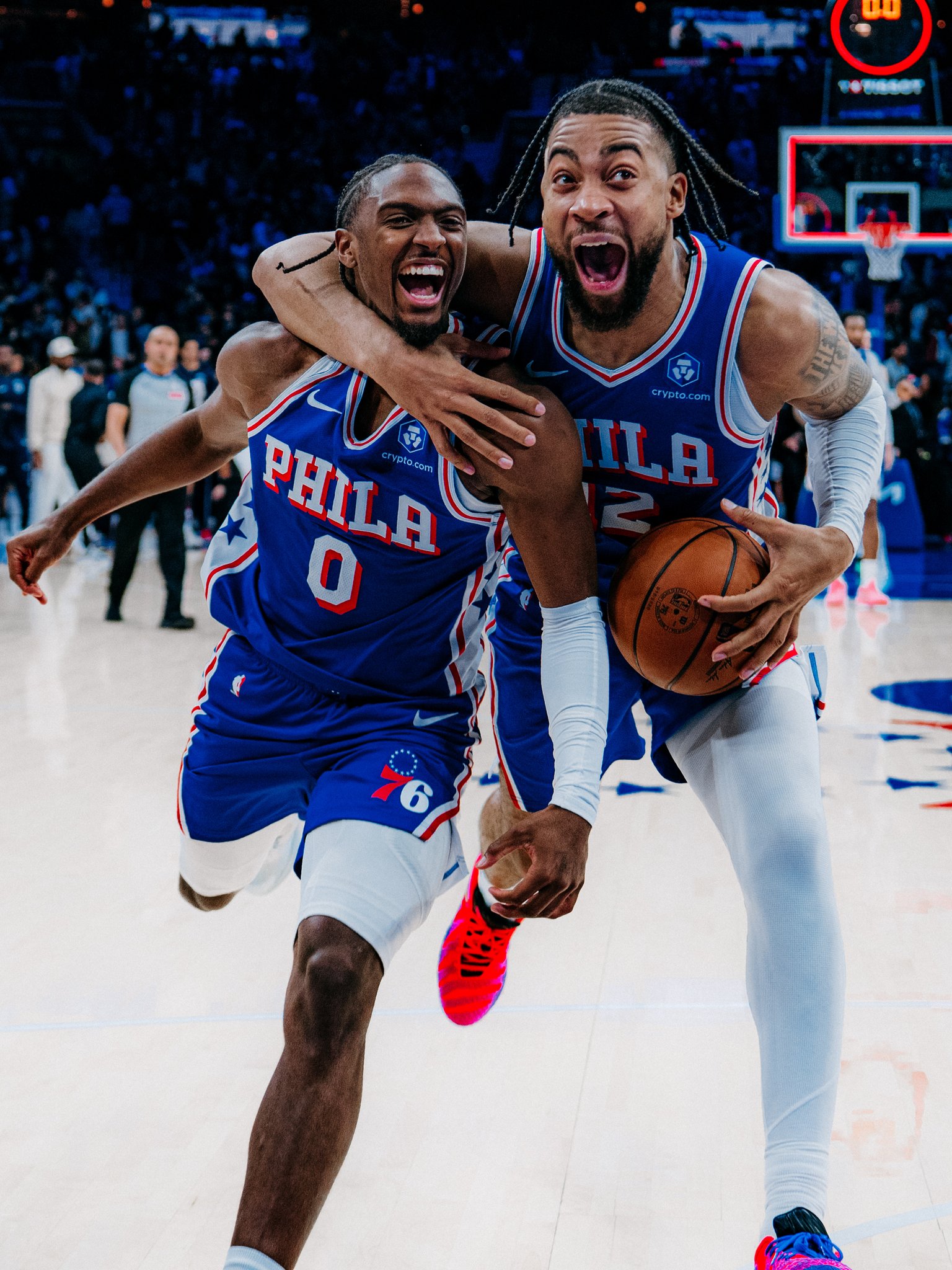 虎撲11月19日訊 76人官方更新X,曬出一張76人球員泰雷斯-馬克西和特倫登-沃特福德的隊贏(yíng)賽場(chǎng)照與球迷分享。