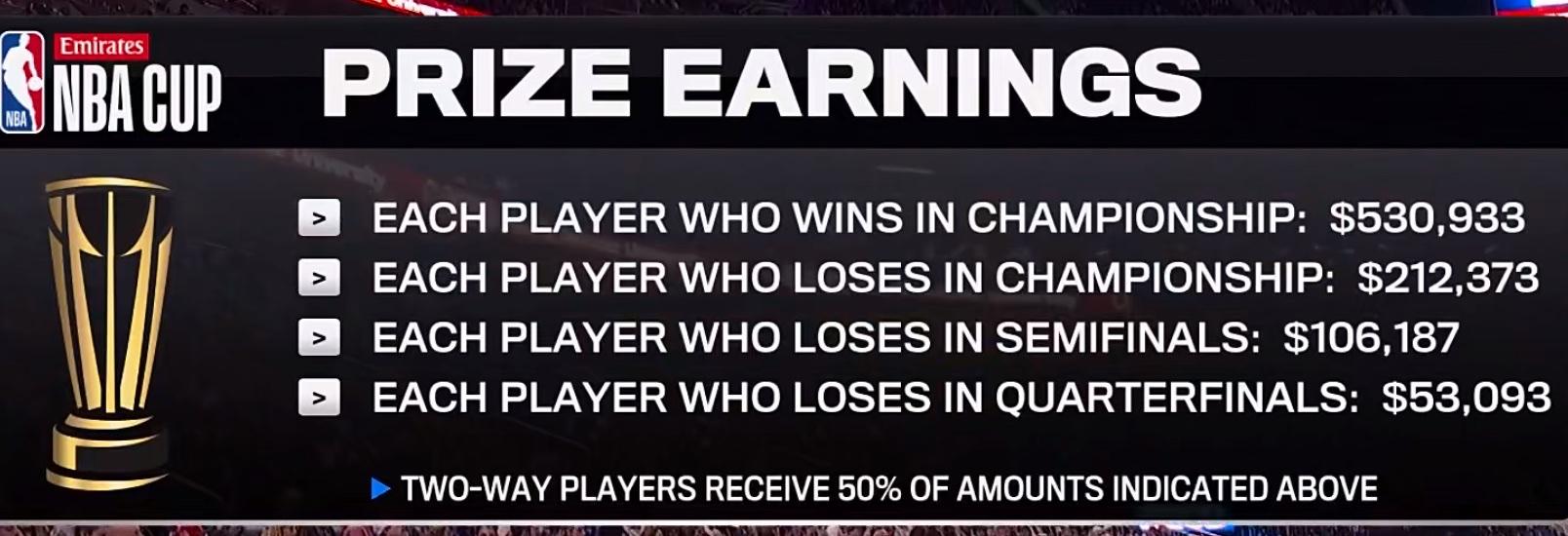 根據賽事規則,各自尼克斯各名球員將獲得稅前530933美元的喜提獎金。