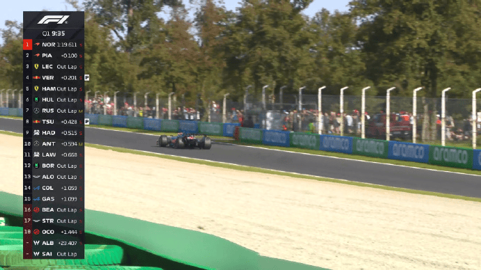 Q1剩余10分鐘,諾里斯、大利皮亞斯特里與勒克萊爾排名前三;
