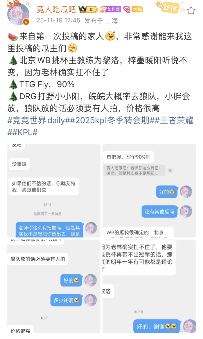 瓜主爆料:WB挑杯主教練是黎洛,TTG大概率拿下Fly,練黎洛T率拿DRG打野小小陽(yáng)