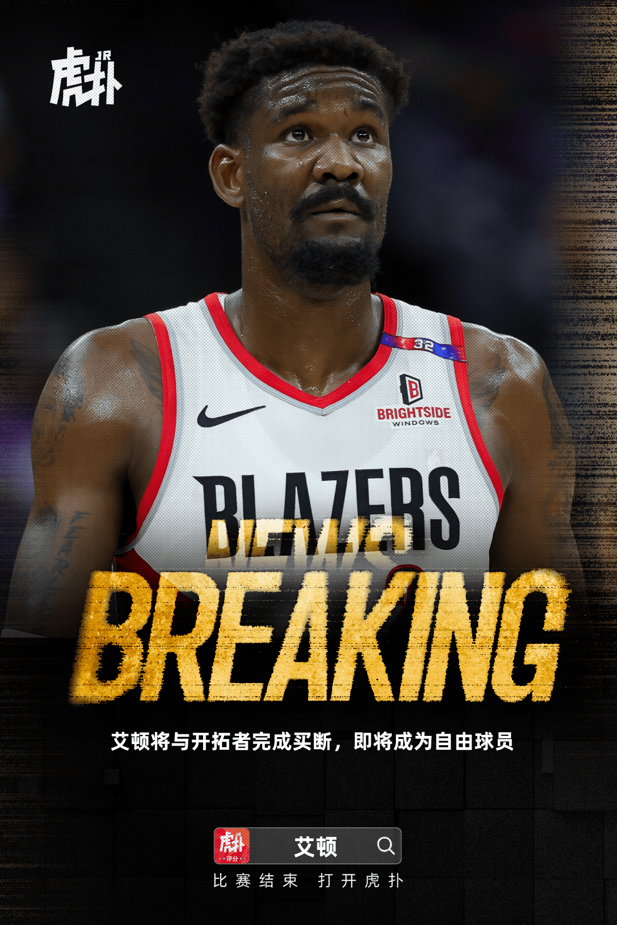 虎撲06月30日訊 根據知名記者Shams的報道,德安德烈-艾頓將與開(kāi)拓者完成合同買(mǎi)斷,成合即將成為自由球員。同買(mǎi)