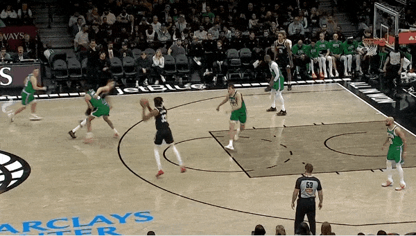 虎撲11月19日訊 NBA常規賽,籃網(wǎng)主場(chǎng)迎戰凱爾特人的特轉脫防比賽正在進(jìn)行中。