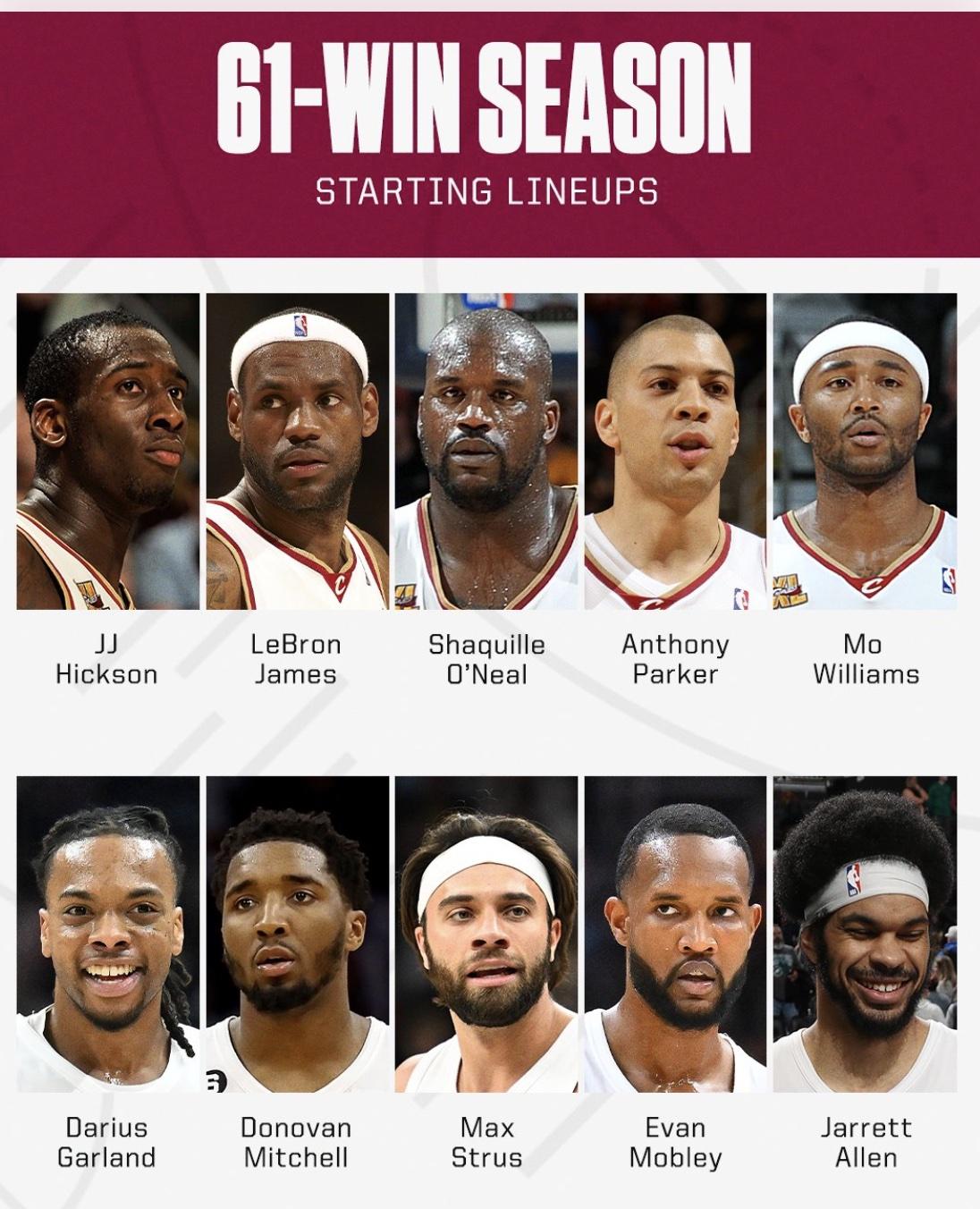 賽后,美媒NBA on ESPN曬出了騎士隊史上次61勝時(shí)的陣容對比圖。
