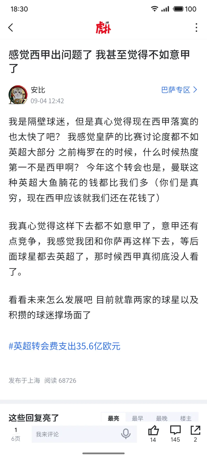 9月份就預測過(guò)這種局面 沒(méi)想到來(lái)的月份預測這么快由安比 發(fā)表在巴薩專(zhuān)區 https://bbs.hupu.com/barcelona