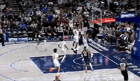 比賽的克勞第四節,戴維斯反擊歐洲步上籃,尼緊克勞尼緊緊貼防將其帽翻在地。防將翻地