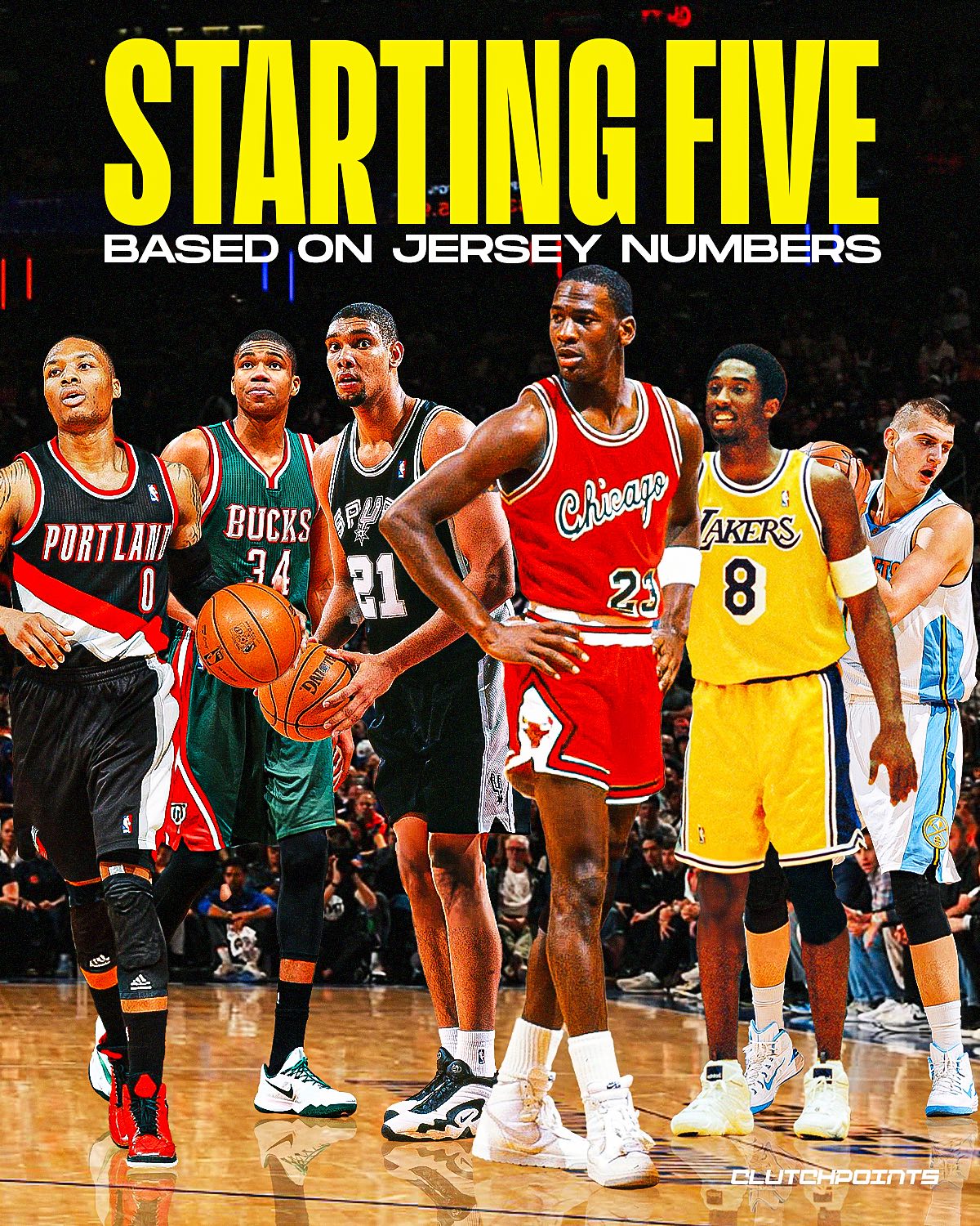 虎撲09月27日訊 今日,美媒ClutchPoints更新社交媒體,曬賽曬出各個(gè)球衣號碼球員組隊陣容。球衣球