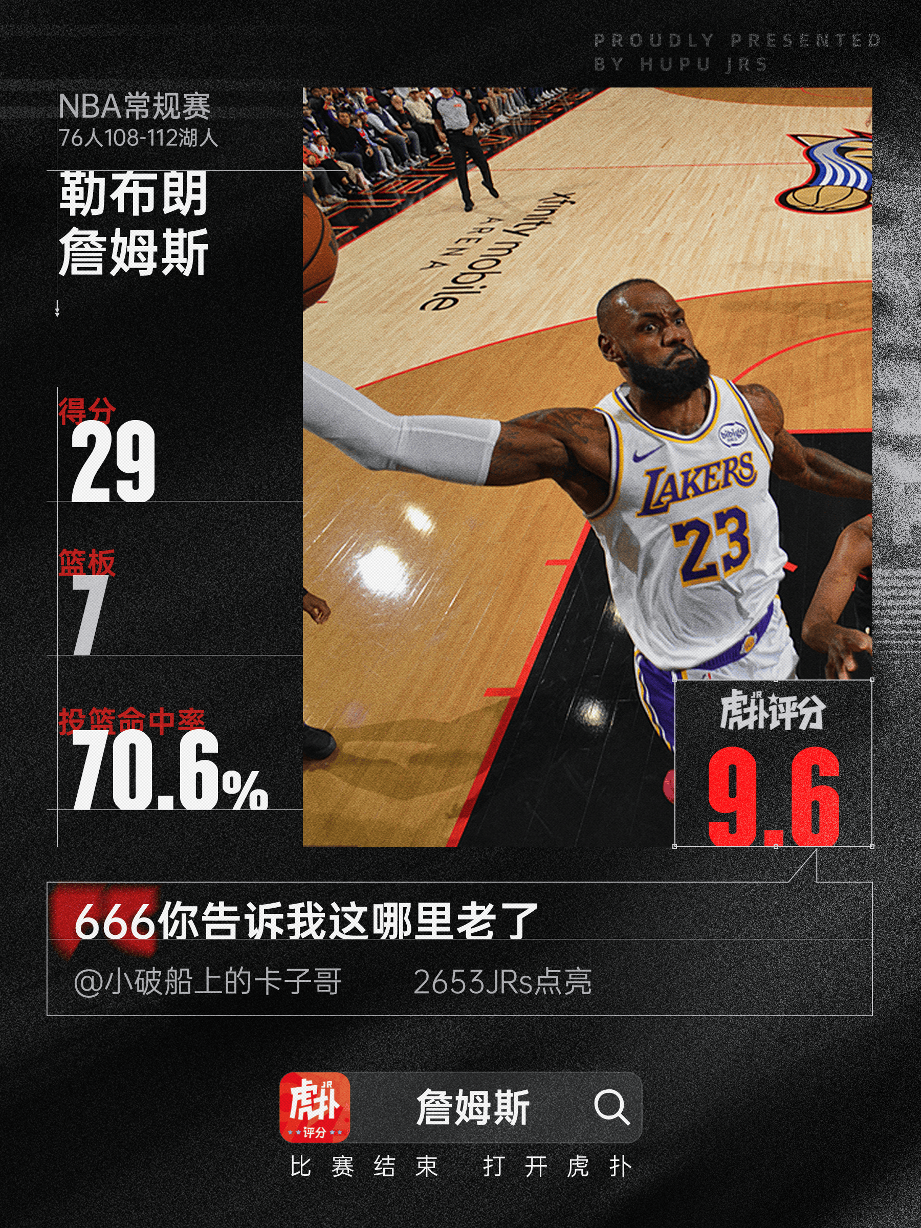 接管比賽!接管季新詹姆斯全場(chǎng)得到29分7板6助,比賽板助得分籃板創(chuàng )賽季新高由虎撲籃球資訊 發(fā)表在籃球資訊 https://bbs.hupu.com/502