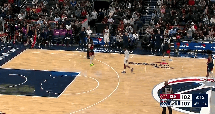 NBA常規賽,騎士對陣奇才的遠分比賽正在進(jìn)行中。
