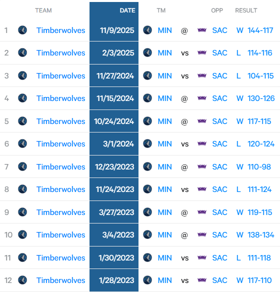 美媒Automatic分享數據:自2023年至今,對陣隊已森林狼和國王的比賽中皆為客隊取勝,客隊已經(jīng)連續贏(yíng)下11場(chǎng)比賽,這是NBA歷史上最長(cháng)的兩隊之間客場(chǎng)贏(yíng)球紀錄。